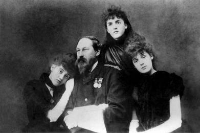 Edward Palliser with his three nieces, May, Sybil and Grace in about